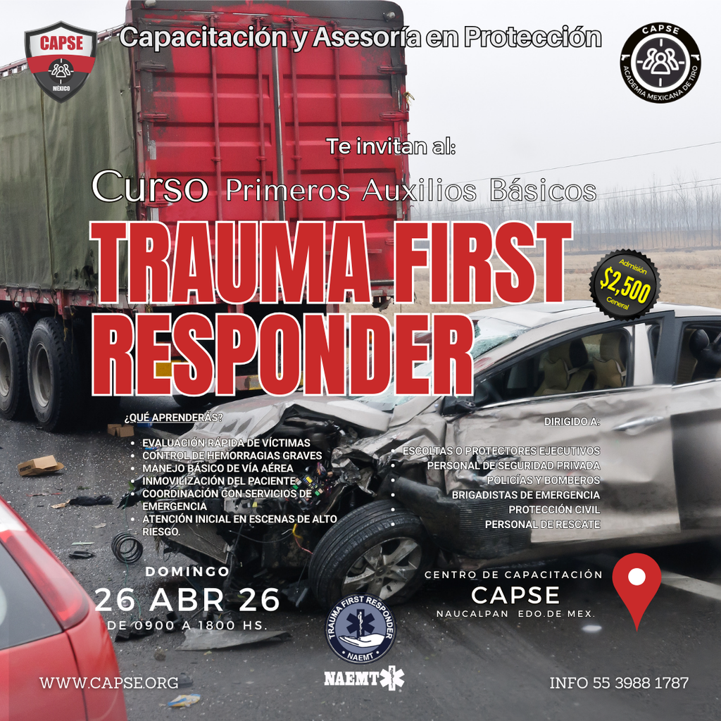 El programa Trauma First Responder (TFR) 10ma ed., es un curso de educación médica que está dirigido al público en general, preparándole para poder brindar la primera respuesta de atención médica de Urgencias en casos de accidentes, desastres y trauma. Proporciona el contenido básico del programa Pre Hospital Trauma Life Support (PHTLS) para aquellos que no tienen una capacitación prehospitalaria previa.